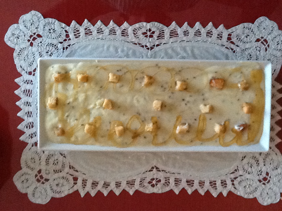 Miel....o taquitos de pan fritos para adornar.