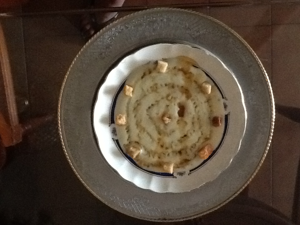Se echan en una fuente o en cuencos individuales y se adorna con la canela , miel, ó pan frito.