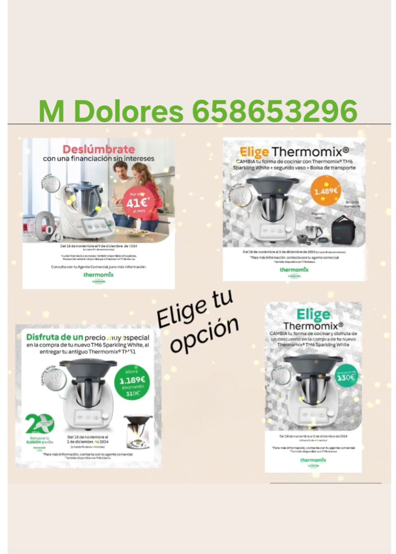 Desde mi experiencia de muchos años en thermomix, me encantaría poderte atender y facilitarte la información que necesites.Mi objetivo es tener clientes satisfechos , para ello no dudes en contar conmigo.