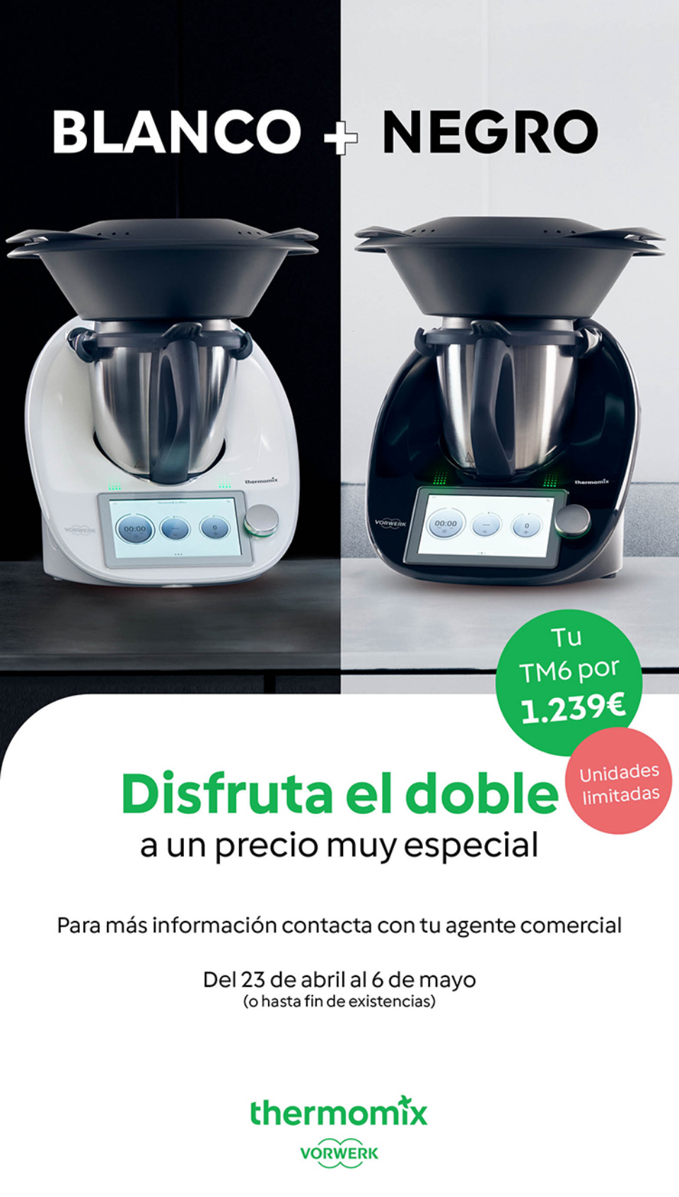 pagarla en cómodas cuotas, con tarjeta aplazada sin intereses o al contado. ¡Pero date prisa, esta oferta solo está disponible hasta el lunes 6 de mayo! Aprovecha esta oportunidad única para conseguir tu Thermomix a un precio inigualable.