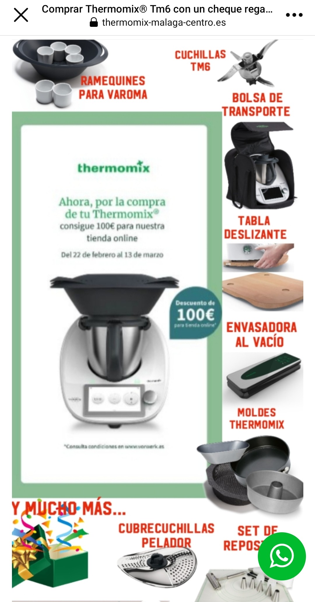Ahora Thermomix TM6 lleva un cheque regalo por valor de 100€ , con el que puedes adquirir en la tienda online utensilios como: Cubrecuchillas pelador , moldes , bolsa de transporte , cuchillas de repuesto, envasadora al vacío y muchos más regalos.