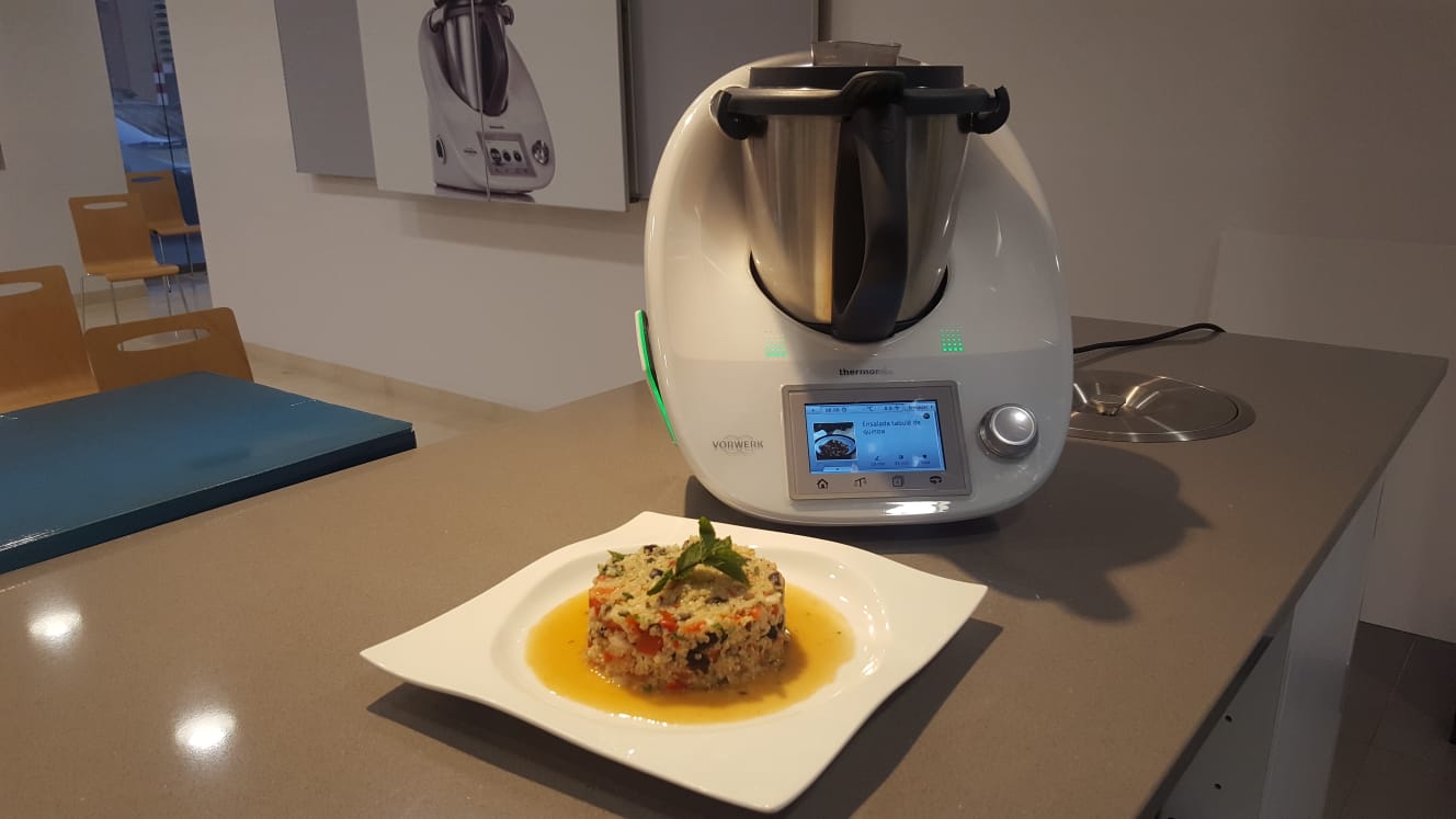Hoy hemos tenido un taller de verano en nuesrta delegación de Thermomix® de Málaga centro. Se han hecho cuatro recetas ligeras, rápidas y refrescantes. Primero se ha hecho un gazpacho de cereza fresquito, luego una ensalada de quinoa y verduras. De plato más fuerte pero también rápido tenemos la tortilla de patatas en hojaldre. A nuestros invitados les ha encantado. Ésta tarde más.