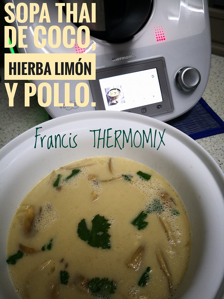 En éste caso mi hermano quería estrenar su nueva TM5 con una receta Thai, y recordé que la plataforma de USA tiene muchas colecciones de comida asiática, así que elegimos esta sopa de coco con pollo y setas que pintaba genial... eso sí.. algunos de los ingredientes son difíciles de encontrar aquí, pero no imposibles.