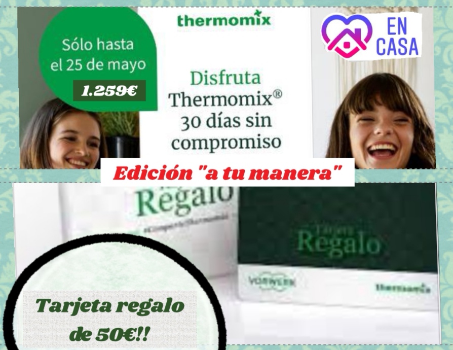 Thermomix te da la oportunidad de probar el nuevo TM6 durante 30 días y además te regala un bono de 50€ para que hagas tu propia "edición", eligiendo lo que más te guste de nuestra tienda Online!!